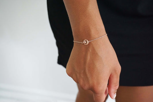Champagne Circle Gem and Rose Gold Bracelets | Bridesmaid Bracelets | Wedding Jewelry | BCHPRG1