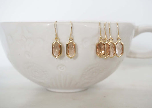 Champagne Gem Hexagon Earrings | Bridesmaid Earrings | Wedding Jewelry | ECHPG33, ECHPS33