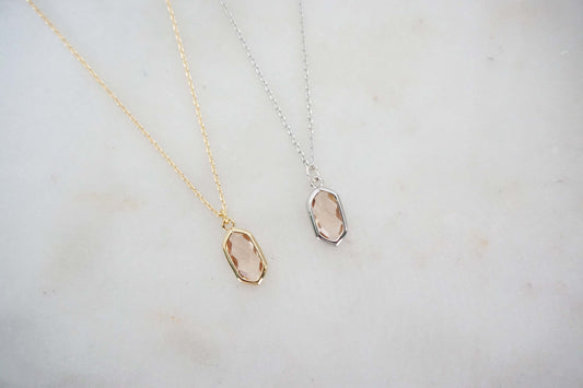 Champagne Gem Hexagon Necklaces | Bridesmaid Necklace | Wedding Jewelry | NCHPG33, NCHPS33