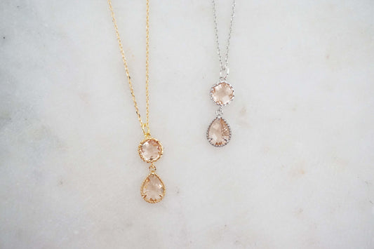 Champagne Gem Double Drop Necklace | Bridesmaid Necklaces | Wedding Jewelry