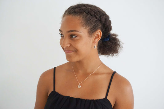 Crystal and Gold Textured Teardrop Gem Earring and Necklace Set | Bridesmaid Jewelry | Wedding Jewelry | ENCG13