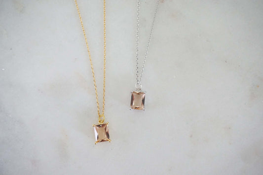 Champagne Square Cut Gem Necklaces | Bridesmaid Necklaces | Wedding Jewelry | NCHPG19, NCHPS19