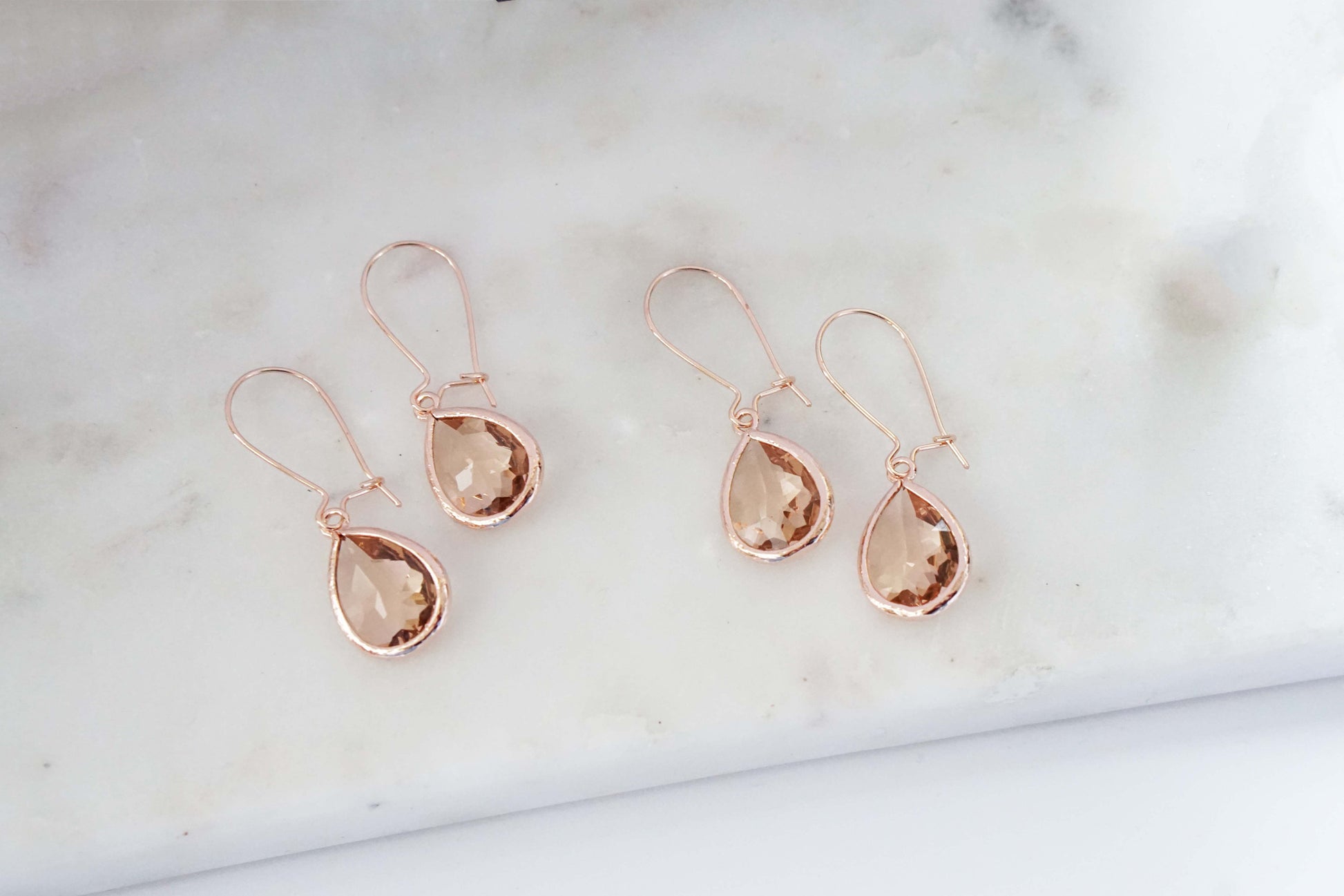 Champagne and Rose Gold Teardrop Gem Hoop Earrings | Bridesmaid Earrings | Wedding Jewelry | EHCHPRG1