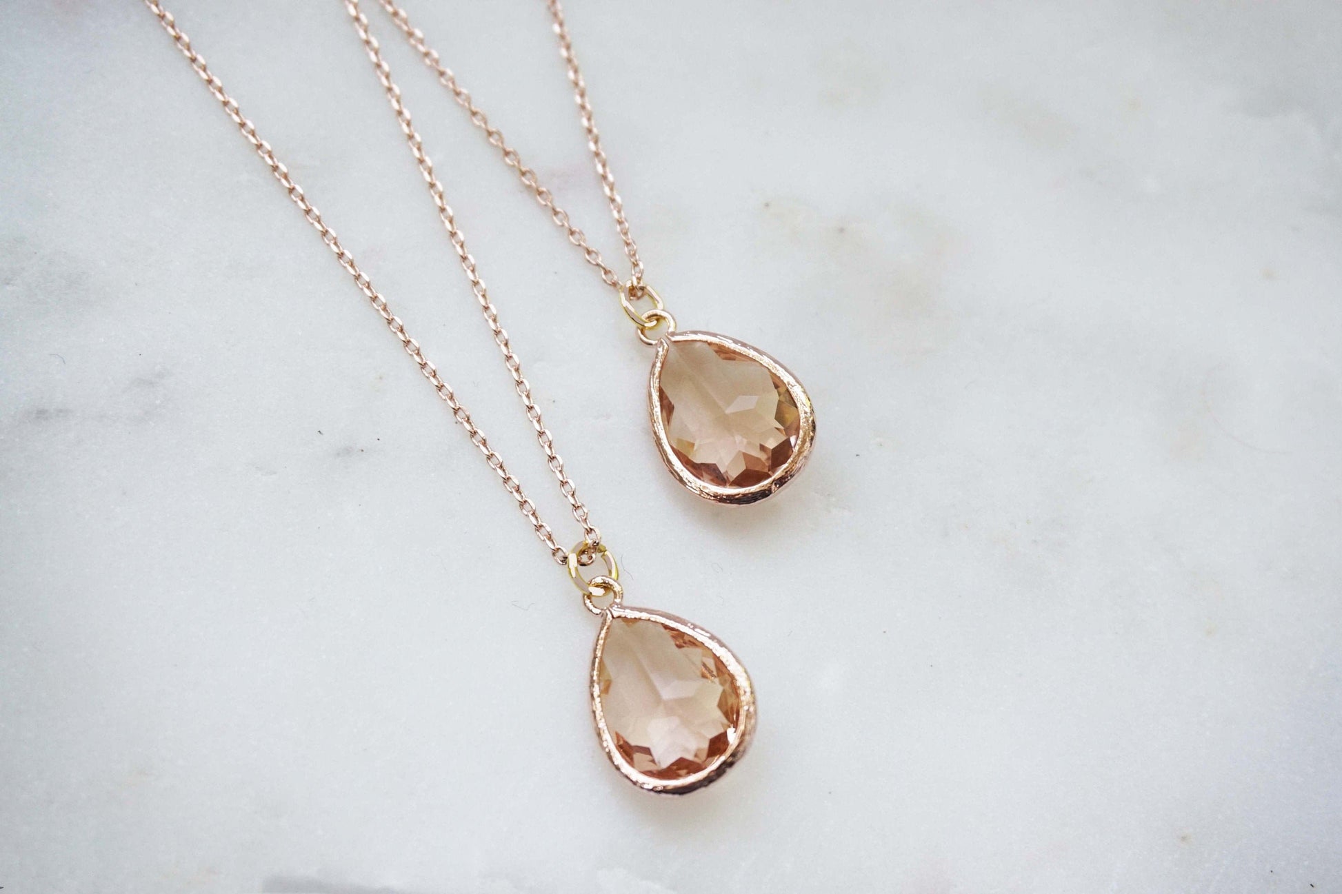 Champagne Gem and Rose Gold Necklace | Bridesmaid Necklaces | Wedding Jewelry | NCHPRG1