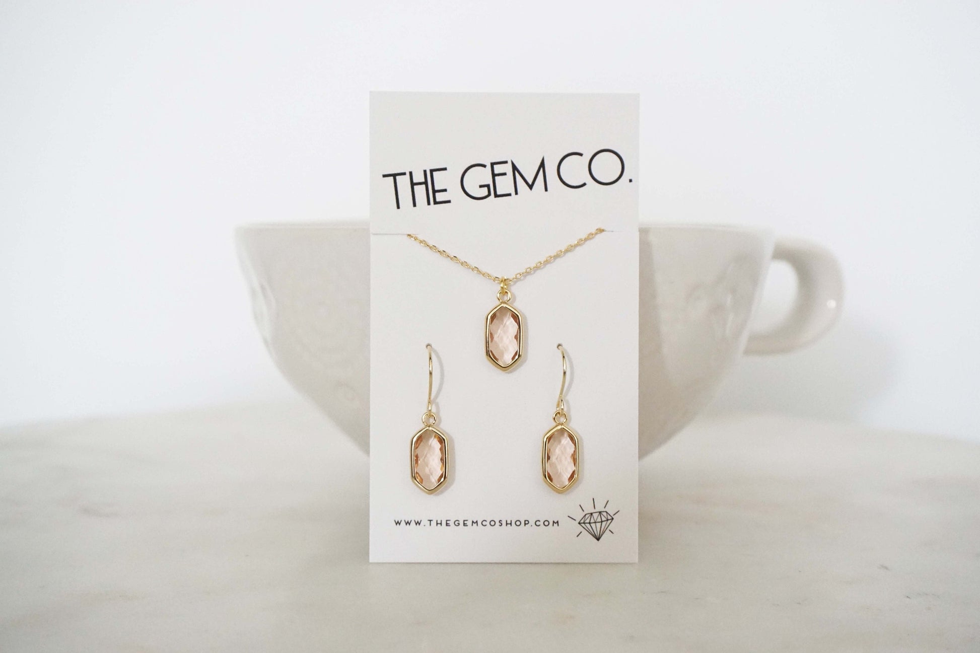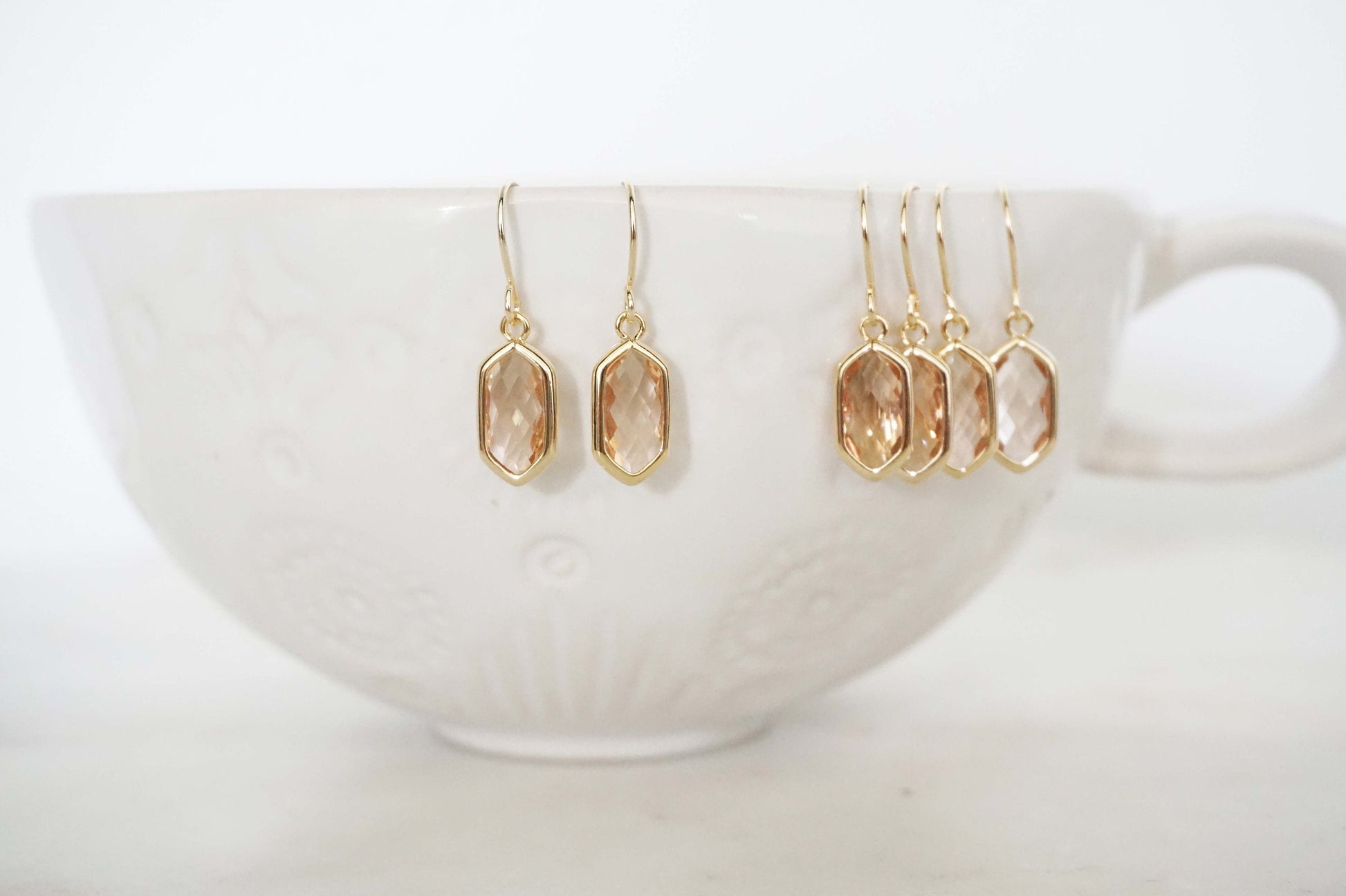 Champagne Gem Hexagon Earrings and Necklace Set | Bridesmaid Earrings | Wedding Jewelry | ENCHPG33, ENCHPS33