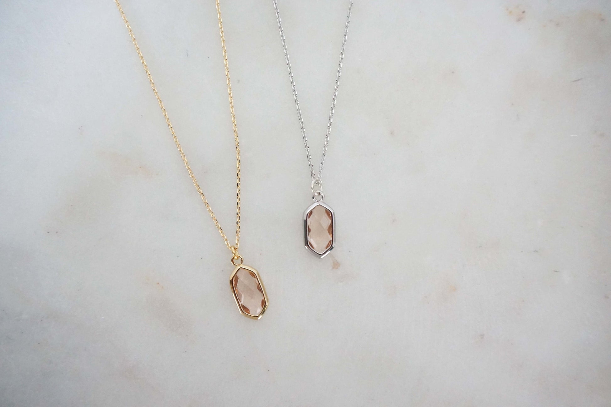 Champagne Gem Hexagon Necklaces | Bridesmaid Necklace | Wedding Jewelry | NCHPG33, NCHPS33
