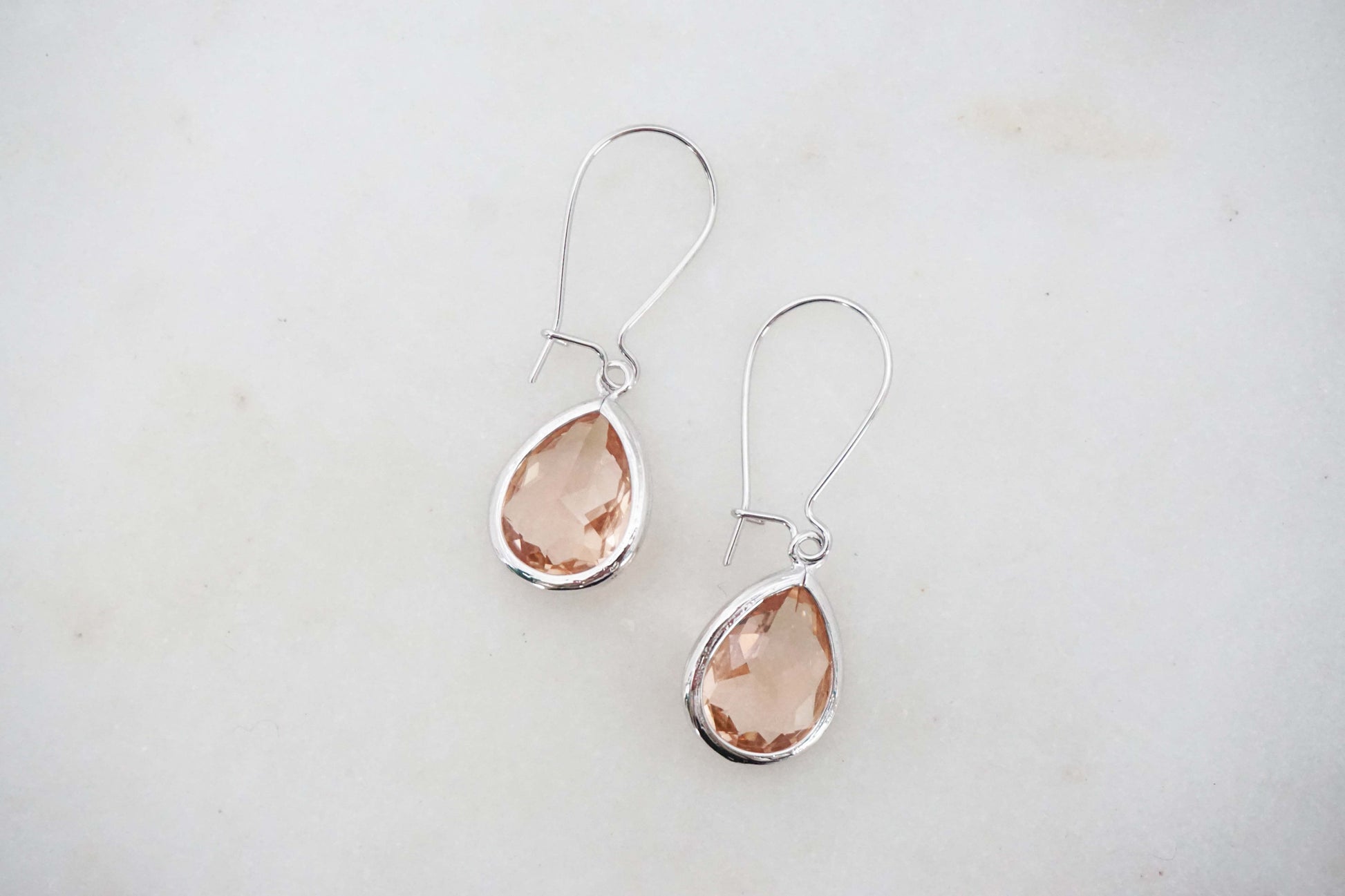 Champagne Teardrop Gem Hoop Earrings | Bridesmaid Earrings | Wedding Jewelry | EHCHPG1, EHCHPS1