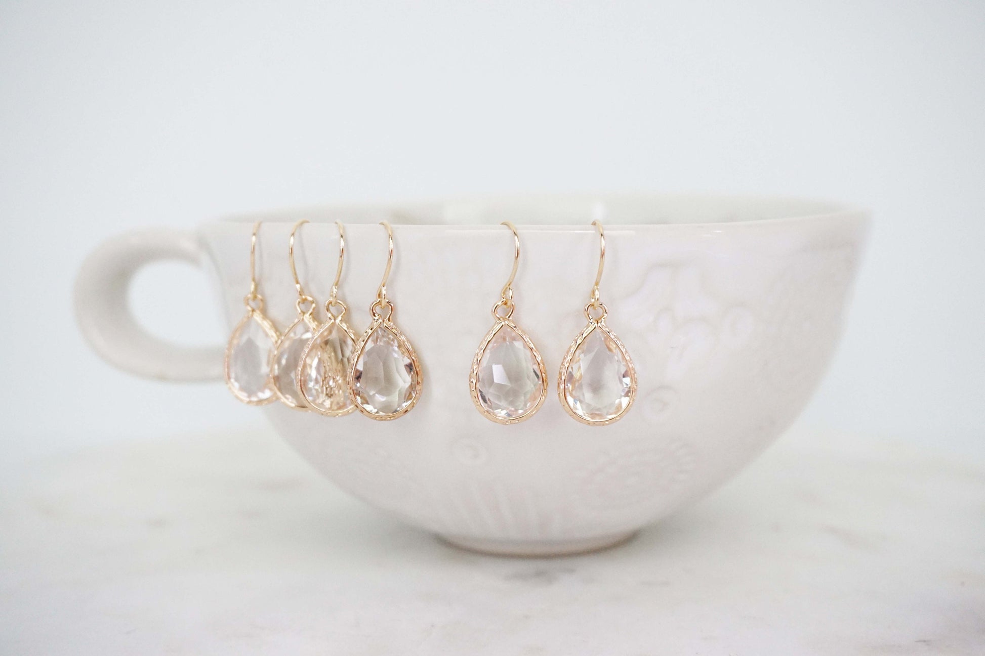 Crystal and Gold Textured Teardrop Gem Earrings | Bridesmaid Earrings | Wedding Jewelry | ECG13